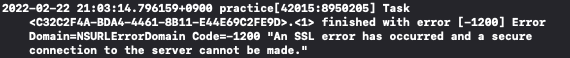 <1> finished with error [-1200] Error Domain=NSURLErrorDomain Code=-1200 "An SSL error has occurred and a secure connection to the server cannot be made."