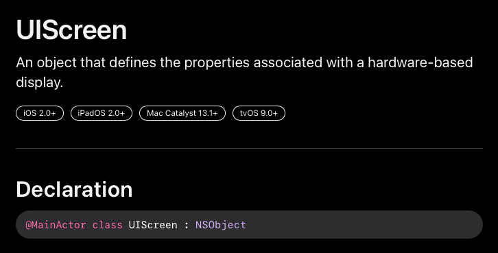 개발자 문서를 읽어보면 다음의 내용이 있다. Declaration "앱의 UI와 View의 이벤트를 처리하는 객체에 대한 배경이다." 여기까지만 읽었을때는 감이 안온다. 자세하게 말하면 UIKit의 동작 방식은 View 혼자서만 이루질수 없고, 다른 객체들과 함께 이루진다. 이때 UIWindow 도 일부 참여하게 된다. 그리고 뭔가 UIWindow가 UIView보다 상위클래스일거라는 이미지가 있었는데 반대였다 UIWindow는 UIView의 하위 클래스다.